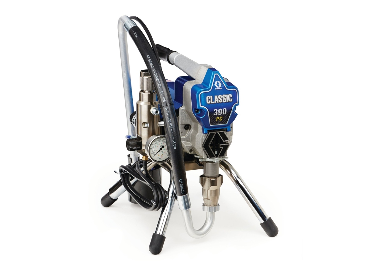 De 390 CLASSIC PC Stand is een sterk workhorse voor professionals die nog maar net “beginnen.” Lichtgewicht en mobiel, het is gemakkelijk op te tillen en te dragen. De CLASSIC 390 PC is het ideale spuittoestel voor klussen in residentiële gebouwen en geeft de beste waarde voor kleine elektrische spuittoestellen.